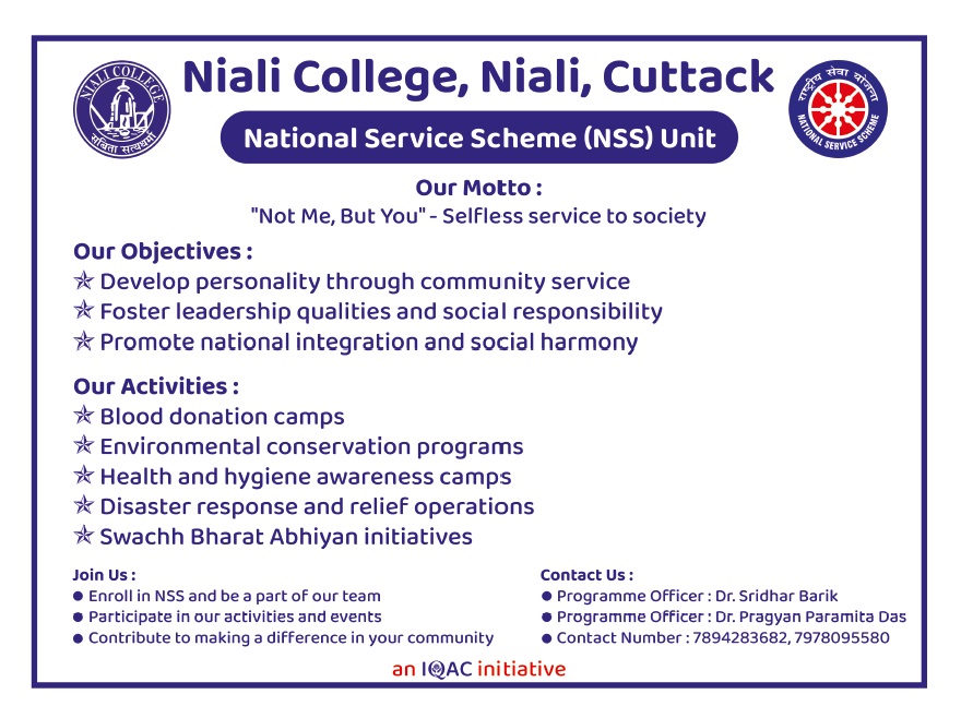 Enrolment strength of NSS in the college is 50+50 (Boys and Girls)